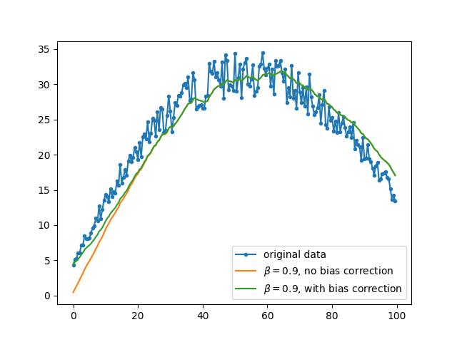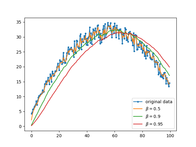 越大加权平均后的数据越平缓,极端情况 为0,则等于原始数据 表示的是平均的是最近的数据数量,例如 ,则表示加权平均后的每条数据是由原始数据的10条数据平均而得到