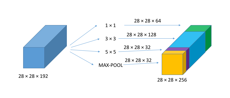 Inception V1主要就是将不同的CONV和POOL堆叠在一起,一方面增加了网络的宽度,一方面提高了尺寸的自适应性,即不需要人为确定应该使用什么尺寸的filter,而是让网络来自己学习。