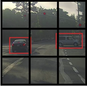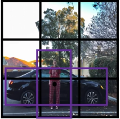 在上面介绍的算法中,一个网格只能检测出一个对象,但是有些情况下,可能多个对象都会落到同一个网格中,如图所示: