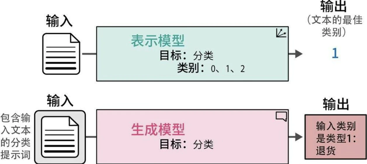 表示模型和生成模型都可用于分类,但它们的方法不同。