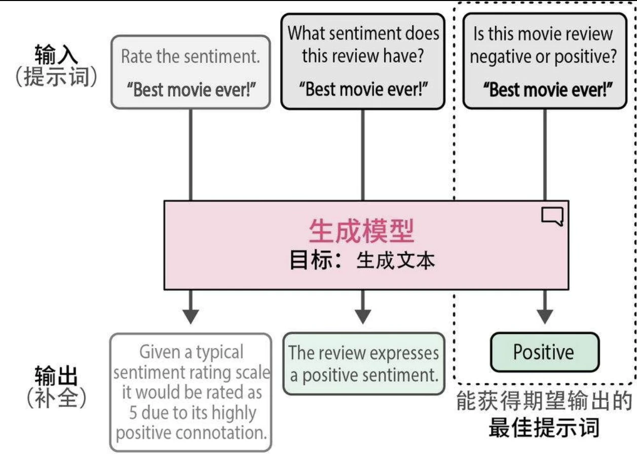 我们需要帮助模型理解上下文,并引导它得出我们想要的答案。这种引导过程主要通过给模型输入指令或提示词来完成。迭代改进提示词以获得期望的输出的过程被称为提示工程(prompt engineering)。