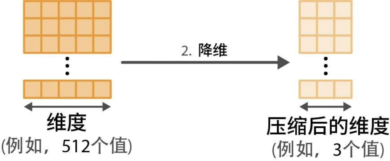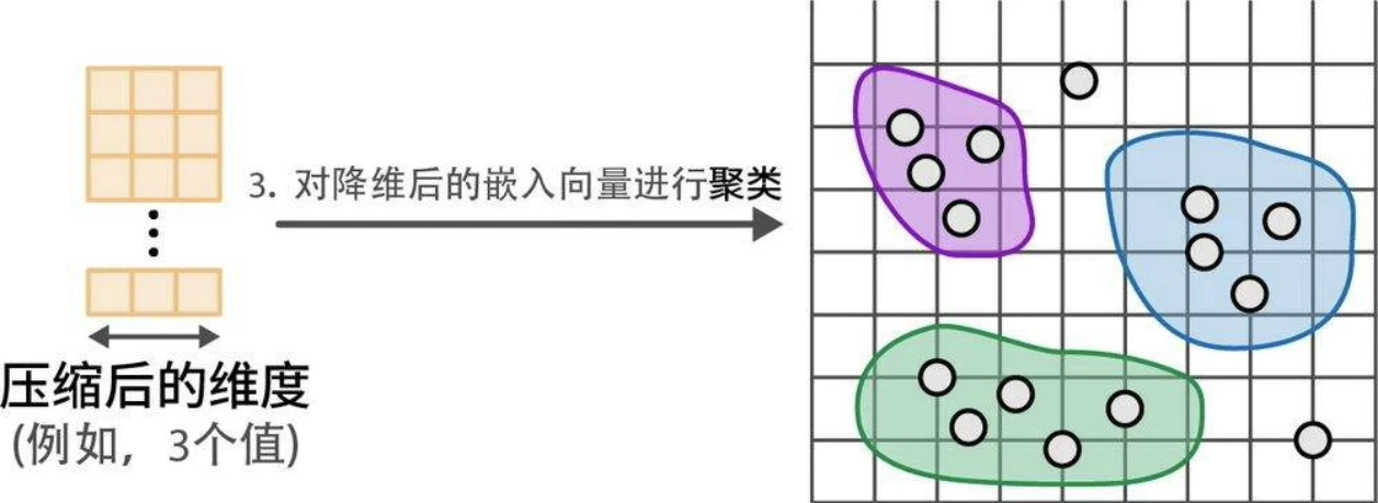 1. 使用降维模型(dimensionality reduction model)将嵌入向量降至更低维度空间。